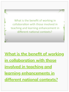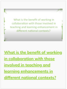 What is the benefit of working in collaboration with those involved in teaching and learning enhancements in different national contexts? (VIT&L Week)