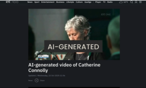 A video that discusses how Artificial Intelligence is impacting the way disinformation is created and spread to manipulate public opinion. It also outlines importance of Media Literacy education and regulatory measures, referencing Ireland’s Online Safety and Media Regulation Act and the EU’s Digital Services Act.