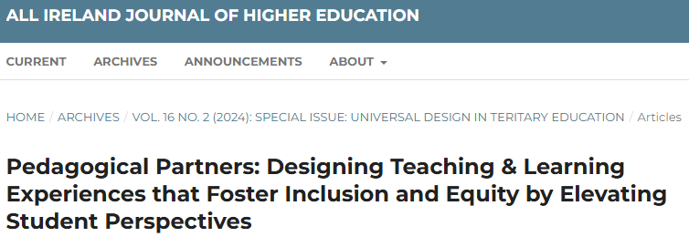 Santucci, A., Mullinix, B., & Ultsch, S. (24/09/2024). Pedagogical partners: designing teaching & learning experiences that foster inclusion and equity by elevating student perspectives. National Resource Hub (Ireland). Retrieved from: https://hub.teachingandlearning.ie/resource/pedagogical-partners-designing-teaching-learning-experiences-that-foster-inclusion-and-equity-by-elevating-student-perspectives/ License: Creative Commons Attribution-NonCommercial-ShareAlike (CC BY-NC-SA).